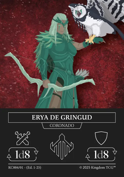 El mazo de batalla de Erya de Gringud™ contiene 64 cartas fijas, dentro de las cuales se incluye la tropa nivel 4 "Kudú Real" que es una carta rara holográfica exclusiva de este mazo de batalla (será el único modo de obtener esta versión de la carta).